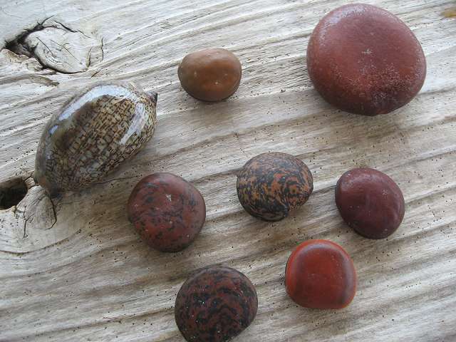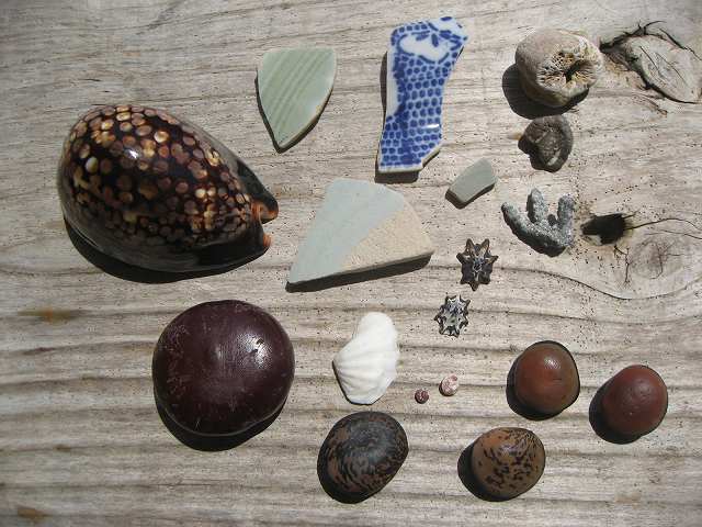 とっておきな出会いがあったにもかかわらず、わたくしめ、相変わらずナマケモノです。 それでも毎日遊びに来てくださる方々に感謝いたします。 久しぶりの豆ネタですが、貯まっておりまして3回分ほどまとめての御紹介です。 遠出の途中で、寄り道して、 観光客の方々はほとんど降りてこない海へ。 ここは、綺麗な貝が多いです。 トグロコウイカ(スピルラ)の殻も。 私は、まだ大人になっていない、 成長途中の宝貝がとても好きです。 巻貝の渦巻きのとんがったところが まだ見えていたり、 模様もなんとも言えないマーブルだったり。 これは、ヤクシマダカラの若者かな? ミミガイ?と、まるでレースのようなキクザルガイの仲間かな? トグロコウイカの殻は、今までも何度か拾っていますが、とっても脆くて割れちゃったコも。。 今回は割らずに無事連れて帰りました。 ずいぶん前から拾っているのに、最近まで正体を調べていなくて、 イカの甲だと知ってビックリ。英名はRam's Horn Shellというそうです。 とっても小さなイカなんですね。見てみたいなぁ。 ココ。 ←参考になりました。 同じ日に、もう一箇所、道草。。。 この浜もとっても久しぶりに降りました。 そしたら、やっぱり待っててくれましたね~~。 とっても綺麗なヤクシマダカラ。 このコもまだ若い固体です。 波打ち際のヤラブの木の下で、待っててくれました。 ジオクレアさんに、ふとっちょモダマさん。どちらもよくよく見て見ると・・・。 ヤドカリさんか、カニさん?にハサミではさまれた痕のような傷がついています。 硬くて割れなかったんだね。 そんな痕跡もとっても愛しいと思います。 別の日に。 久しぶりに歩いた浜で、 こんなにたくさんの海豆が。 やっぱり、ワニグチさんが多いです。 嬉しい、ジオクレアちゃんもいくつか・・・。 このコは、ここ最近、ぽつぽつとお会いしています。 イルカンダさん。 沖縄本島には自生があるようですが、 こちらには自生していません。 私の海豆コレクションの中では、 数が少ないほうです。 アハハ。なんか、くちが波打ってるみたいに見えて、 マンガに出てきそうなコだ。(アンパンマンとかね。。) 久しぶりに、ふとっちょ系のジオクレアさん、ゲット。 かわいか~。 やったぁ!! ハンバーガーくんを見つけると、 やっぱり第一声はこうなります。 コケムシいっぱい、ついでにヘビガイ?みたいなコもくっつけてます。 いやあ。。たまりませんね。 便乗して一緒に旅をしてきたと思うだけで、 きゅぅん。。と、なります。 これもジオクレアさん。 また別の日に、別の浜にて。 やっぱり久々に行くと、結構拾えるもんです。 ちょっと、くしゃっとなったワニグチさん。 大好きなジオクレアさんは、 何度見つけても、毎回大喜びしています。 そして、こればっかりは、絶叫しましたね・・・。 発芽しているニッパヤシさん! 今まで何度も発芽を試みて叶わなかったのですが、 発芽しているコに出会えるとは。 感激です。 頑張って大きくなってね~。 いやあ。。やっぱり、海豆って。。。 か、かわいか・・・。