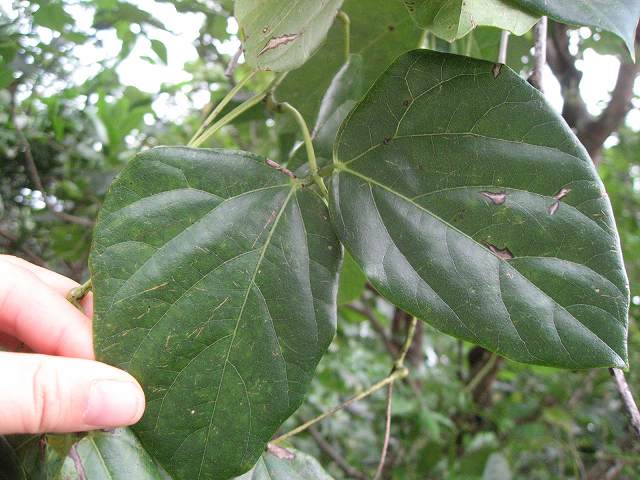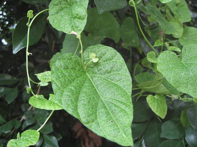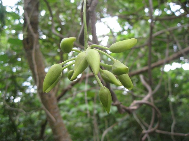 いつも写真を撮っている時点で、このブログの記事の文章はサラサラと流れてきているのに、 なぜでしょう。。。 そうです。パソコン、いじるの苦手です。 ついでに、携帯もとっても苦手です。 私の最新型携帯電話は、先日ド●モ様より連絡が入りましたところ、 来年の3月31日で完全に利用不可能になるそうです。。。 その連絡を受け取ったとたんに、マイ・携帯電話さんはやる気をなくしたらしく、 アルバイト先でカワイコちゃんたちを激写して リアルタイムでブログに投稿しようとしたら、 カメラ機能が壊れました。 なんか・・リモートコントロールされている気がしてならん・・。 程良く、たま~に圏内になる絶妙な具合が、とても気に入っていたマイ・携帯。 最後の日まで頑張るか?お買い得に負けて今購入するべきか? ひじょーに迷うところであります。 感度抜群にバリバリ圏内な感じの携帯電話なんて欲しくないなぁ。。。 (↑何のための携帯だ?) と、いうわけで、もしも携帯電話を新しくしたとしても、 なるべく電波が届かないように、よりいっそう頻繁に森の中へ 避難したいなぁと思うこのところです。 前置きが長くなってしまいました。 今日は、以前森で逢った、カショウクズマメのこと。 花だけではなく、葉っぱも見た~い!との御要望もありました。 私も、花が咲いていてくれたから気がついただけで、 きっと葉っぱだけの時期はなかなか見つけれなかったと思います。 よし。まじまじ葉っぱを観察するとしよう。 再度、あの可憐なカショウクズマメの花が咲いていた森へ足を運びましたよ。 うーん。。 やっぱり、私のコンパクトデジカメでは森の中でのズームは限界がありました。 花は前回より少なかったです。 土へと舞ったのでしょうね。 ほら。やっぱり。 ひとつひとつで見ると、 おもしろい花の形です。 持ち帰った花。→ 先日、アルバイトでお逢いした植生学の御専門の先生がおっしゃっていた言葉に、私はとても心温まりました。 つる性の植物達は森の絆創膏みたいなもので、 台風や病気などで大きな木が枯れてたり、葉を落としたりして森の天井にぽっかりと穴(傷)ができたところを塞いで修繕してくれるんだそうです。 カショウクズさんも、大切な森の絆創膏。 森の中は色んな植物達が交差していて、葉っぱを突き止めるのも大変。 観察しやすい下の方の蔓を捜しました。 おお。いました。 森の玄関は、お日様をそのままに浴びれるので低い位置にも蔓がたくさん這っていましたよ。 ただ、本当に残念な事に、この場所は数年後に道路改変工事に伴う 伐採が決まっているのです。 カショウクズさんも他の植物達も、今のうちにぐんぐん伸びて 子孫をたくさん残して広がって欲しいと、ただそれしか言えない自分がもどかしい・・。 ついでに、カショウクズさんとはお仲間の ワニグチモダマさんの蔓も別の場所で 撮影してきました。 とても似ているので、正直、葉っぱだけでは 判別難しいです。 ここは去年、花が咲いているのを見ていたので、 間違いなくワニグチモダマさんですよ。 今年は、残念ながら花は見れていません。 こんな葉っぱ。 似てますね。 カショウクズマメも、ワニグチモダマも、なんとオオコウモリちゃんが花粉を運ぶのですって! 大切な森を守ることは、大切な生き物たちも守ること。 大切な生き物たちを守ることは、大切な森も守ること。地球を守ること。 それは、人間も守るんだ。 この季節、森は色んな花が咲いています。 道路際で静かに咲いていたキキョウラン。 とても好きな花のひとつです。 クチナシの花も。 森はとてもいい香りです。 他にもシャリンバイや、相思樹や センダンなどなど・・ 道路から森の方を観てみるだけでも たくさんの花たちが目に映ります。 春は、満開の綺麗な花と優しい香りで いっぱいですね。