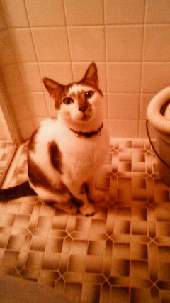 母の姿を見つけたなり、ベランダから 思わず声をあげずにはいられなかった、我が息子。 ただいま。あくび。淋しかったね。 お母さんもとっても会いたかったよ。 今日はずっと母のそばから離れようとしない、あくび。 トイレや洗面所も同伴です…。
