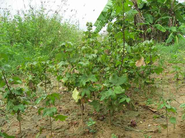 自宅と機織り小屋と、畑と・・・。 しかも、我が家はベランダに植物たちがいっぱいいるのだ。 みんなをお部屋の中に避難させるのも一仕事です。 我が綿畑。 初めての台風なのです。 頑張って乗り切ってくれますように!! 切なる思いを込めて、 綿のお手入れをしながら、 今現在付いている実を数えてみました。 50個ほど。 綿は、コットンボール(実)がはじけてからでないと収穫できないので、 重たい実をぶら下げたまま台風を迎えなければなりません。 きれいなお花もたくさん 顔をのぞかせています。 みんな。試練だけれど、 頑張ってほしいよ。 種を散らしておいた『インド藍』も、ところどころ芽を出して大きくなっていました。 少しでも風の抵抗が少なくてすむようにと、 剪定して葉っぱも少なめに落としておきます。 みんな。タフに。 私がお借りしている所以外は、かなり草の丈が伸びているので、少し綿たちが守られるかな? 台風は決して嫌いではないのだけれど、どうか手加減しておくれよ・・・。 何せ、初めての経験なのだから。