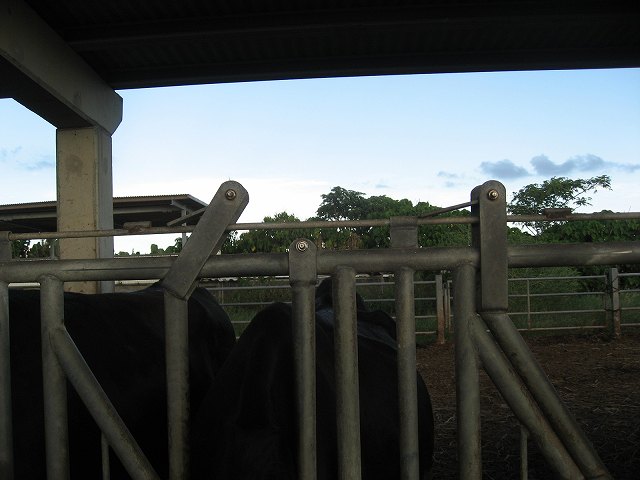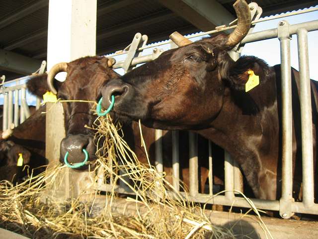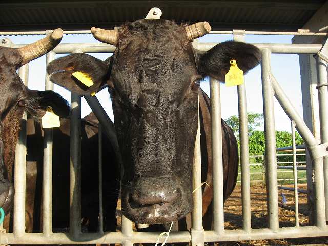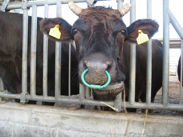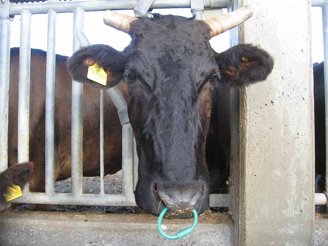 台風は通り過ぎ、まだ涼しい風が吹いています。 ども。ひろみさんですか。 ひろみさんも、はじめましてだね。 なっちゃんです。 私、なっちゃんのことがとっても好きなんだ。 なっちゃんは、いつも群れの最下位です。 でも、マイペースを貫いていて、 上手に群れの中にいます。 コワイ奥さんたちを怒らせることもほとんどなく、気楽に自分のペースで生きる術を ちゃ~んと知っています。 ね。なっちゃん。 さて今日は、最初に御紹介した、よしこさんのお話。 牛舎の奥様たちは、お食事の時は一度『スタンチョン』というところに頭から入ると ストッパーがついていて、人間がレバーを降ろさないと首が抜けない仕組みになっています。 強い牛さんは身動きできる状態のままだと、弱い牛さんのご飯も横取りしてしまうので、 お食事の間は、みなさん餌場に固定された状態にしておくのです。 なので、お食事を持っていくと、強い牛さんから順番にスタンチョンに入ってきます。 現ボスのよしこさん。一番最初にスタンチョンに頭を入れました。 そして一番最初に飼料をむさぼります。 飼料を全員に配ったら、またトップの方から干草を入れていきます。 一通り順番で草を入れたら、後は適当におかわりを補充していきます。 その日もいつものように干草を少なくなった所に補充していました。 アレ?? 並んで草を噛んでいる奥様達の後ろを大きな黒いものが通ります。 エッ??な、なんで?誰かまだ隠れてたの?? !!! ひとり増えてる!! アレ?よしこさんではないですか!!! よしこさんったら、 おとなしく静かになつこさんのお隣で 草をムシャムシャ・・・。 エッ?エッ?どういうこと?なんで??なんで?? 意味がわからず、よしこさんが入っていた最高位へと走って行くと・・・。 !!!!! みさえさんの隣りのスタンチョンが、ストッパーを超えて外れていました。 エーッ!なんで~?? 最初からきちんと引っかかってなかったのかなぁ?? おかしいなぁ・・・。 朝はストッパーがうまく引っかかってなかったのか?と思いましたが、 なんと、夕食時にも同じように、よしこさんったら、しばらくしたらなつこさんのお隣へ移動していました・・・。 よしこさん・・・。 どうやってはずしたの?? ねぇ、ねぇ・・・。よしこさん。 (ムシャムシャムシャ・・・。おいしいな。)