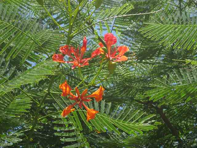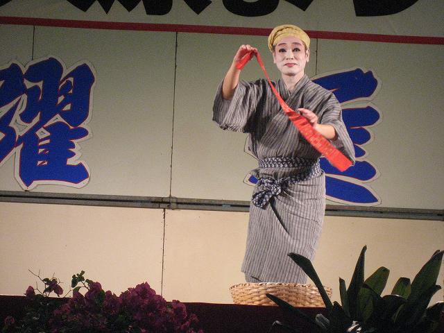 私の工房はこの集落にあります。 お祭りまでの数日は、夜も太鼓の音などが聴こえてきて、集落のみなさんが踊りの練習などをしていましたよ。 工房からお祭り会場までは歩いてすぐ。 集落の中でホウオウボクのお花が咲いていました。 きれいだな。 この集落は、新城島からの移民の方が多く、新城島の伝統を受け継いだ踊りなどがあります。 いつもこのお祭りのクライマックス、新城島の『まき踊り』と、 最後にすぐ目の前で上がる綺麗な花火を楽しみにしてるんです。 おっと。今回はもうひとつの見どころが! と、言っても、我が家はテレビが映りませんので私は知らないんですけどね・・・。 沖縄の芸人さんで、石垣島御出身なのだそうです。 『當間武三』(トウマタケゾウと読みます。漢字合ってるかな?)さん、オン・ステージ!! あら。どうも。 もひとつ、どうも~~。 武三さんが一声出すたんびに、 すぐ後ろで踊り終わった婦人会のみなさんの 大爆笑と黄色い声援が。 なぜそこで大爆笑なのかよくわからないところでも、笑いがとまりません。(笑) お箸が転がってもおかしいお年頃なんですね・・・みなさん。 そんな御婦人たち、武三さんに負けないくらいの舞台化粧を落とさずに盛り上がっているもんだから、傍で見ている私は2倍も3倍もお徳な気分でありました。。。 笑いって、いいですね~~。 もちろん、武三さん、踊りもとても素敵でしたよ。 お腹をよじってみんなで大笑いした後は、いよいよ『まき踊り』。 しかし、この写真が一枚もないのです。 なぜならば、おじいもおばあもおっちゃんもおばちゃんも、チビッコもお姉さんもお兄さんも、 みんな両手をつないで一つの輪になって踊るのです。 なので、カメラの出番は無し。 これが、なんかとても良いのです。 昔からの伝統の踊りなのですが、おじいたちが輪の真ん中で島言葉で唄っている歌も、私は意味もわからないけれど、それでもなんだかぐっとくるのです。 みんなで一つの輪になった後は、みんなが待っていた花火です。 旗頭のすぐ上の夜空に花火が舞います。 いやあ。綺麗でした。 夏ですね~。 またひとつ、夏を終えたのですね~。 集落のみなさん、お祭りの準備から片付けまで、本当にご苦労様でした。 毎年、楽しみにしています。 お酒は飲んでいませんでしたが、なんだかほろ酔い気分です。 お友達と三線の先生も一緒に我が工房まで歩いて帰って、島酒で打ち上げでした。