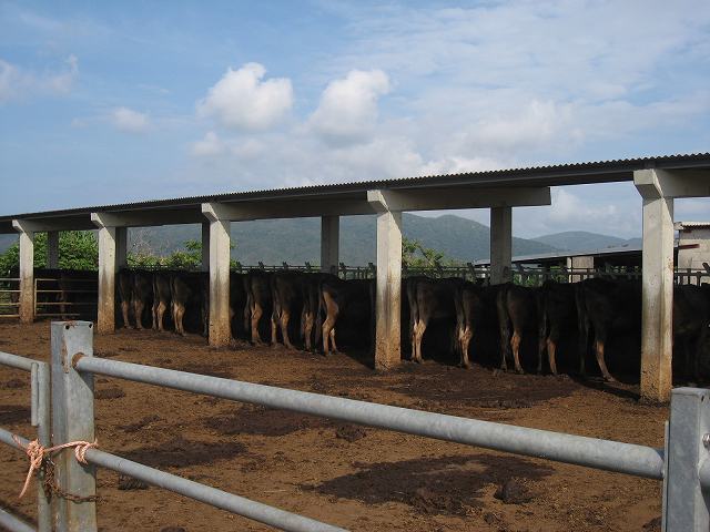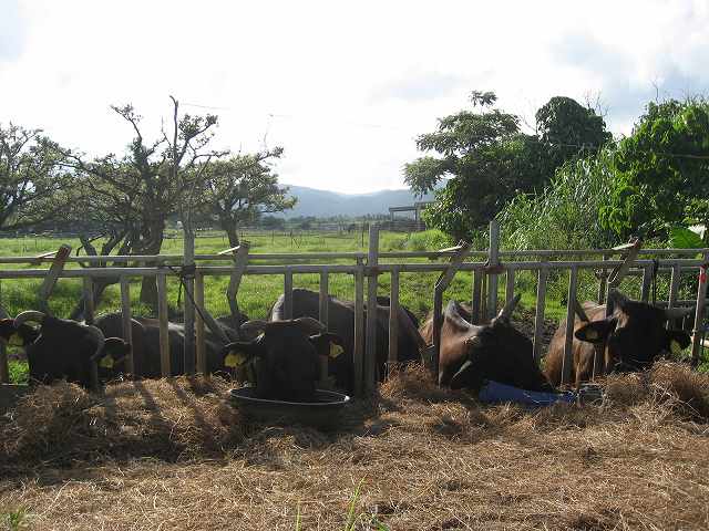 無風だね。 無風だよぉ。 無風さね・・・。 無風とばい。 だっからよ・・。無風ってば。 さすがに、バイト人はひとりでうだっている・・・。 はにゃぁああ~~・・・。あちぃ・・・。あちぃです・・・。 あちぃと、干草もウンコもますます重く感じるのはなんでだ?? あのぅ・・・。 お願いがあるんですけど・・。 オウギバショウさん。 軽くでいいんで・・・。 扇いでくれませんか? だって。 『扇芭蕉』って、 せっかく『扇』という字が入っているではないですか・・・。 ・・・・・。 そうか・・。 キミ達も風を待っているのですか。 仕方がないので。 奥様たちのバック・ショットでも 撮ってみた。 いやあ・・・。 ども。あちぃですね。 みなさん。お元気ですか~? こうも無風だと、時間も止まっているかのようです。 ほら。ニンゲンさん。 食って精を出せってば!