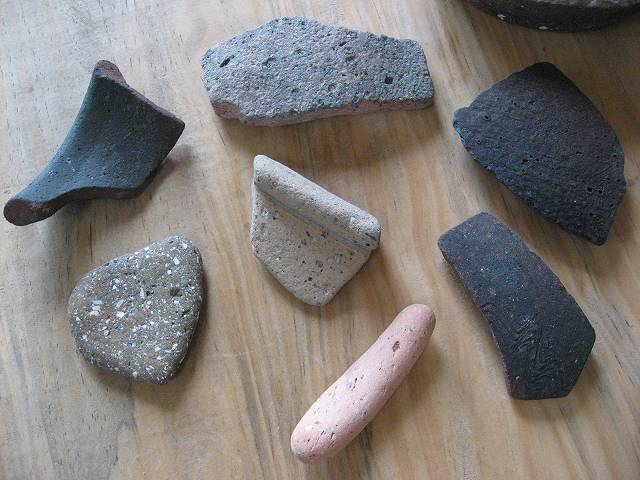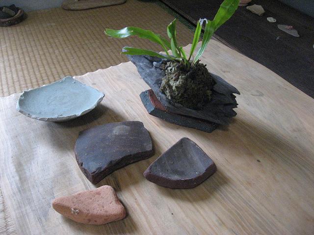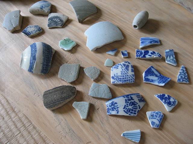 またちょっとしたことをつらつらと、つぶやき系にて。 プランターの和綿の『大島』さん。 只今、たくさんはじけています。 肌触りのよい毛布とか。 そういえば、『ロバちゃん』って名前の毛布を大事に抱っこしていたな・・・。 コットン・ボールを触って、ロバちゃん思い出す・・。 他にも和綿の『弓ヶ浜』さん、『茨城』さん、『伯洲綿』の白と茶綿もポツポツと・・・。 そういえば、先日の木工教室。 以前作ったスプーンにうるしを塗っておいたのが乾いたのです。 フム~~。 良いお色になったではないですか。 私、ホント、漆でかぶれたことがない・・・。 今、実は木工を後回しにして 口が欠けた古い壷の『金継ぎ』(金直し)をやらせてもらっているのです。 これが、欠けた部分を漆とトノコで修繕して 最後は金箔で仕上げるという、 とっても高級な御趣味なのであります。 (二十歳ぐらいの頃に、教室に行こうと思って門を叩いたら、老後の贅沢な趣味って感じで、極貧な私は諸々の事情で諦めました・・・。) 夢中になってやっていたら、手が漆まみれになっていたり、 そんな手で鼻の下こすったりしたけれど、いっこうにかぶれません。 『金継ぎ』と、いえば・・・。 陶器や磁器・・・。 そんな陶器や磁器のかけらがね・・・。 また、手を出すとはまりそうではあるのですが、 ここは、キリがないのでほどほどにとどめてはいます。 これは・・・!と思ったコだけ。 の、つもりがちょこっとたまってきてますね・・・。 印判のものや、筆で書いたものやら・・ 全然勉強していないので、知識はまったく無し。 ただ海岸でカワイイと目に付いたというだけです。 釣り用の錘も昔は陶製。 このへんは、沖縄特有というか、沖縄本島のみならず、 八重山独自のものらしきかけらも。 手前の方は、おそらく『パナリ焼き』。 他にも色々とありますが。。。 ただ持っているだけではなくて、活用できるものはちょこっとオシャレな器がわりにしてみたり。 この、割れたカケラでもって、話の花が咲きますよ。 最近、もっぱら師匠に教わってばかりです。 陶片も、奥が深いようです・・・。