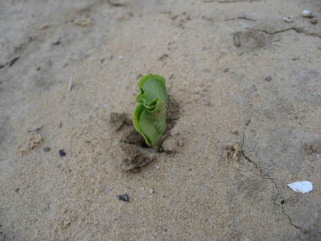 昨日もじつは、山へ。 二日連続での藪漕ぎは、師匠も私も、微妙に口数少なく? 楽しいとはいえ、なんだかんだ疲労感募っていたのですね・・。プププ・・。 しかも収穫アリだったのは、助手の私のみ。(実は、師匠と私は目的が違うという・・) あ。師匠の疲労感は、それが最大の原因だったりして・・・。 師匠・・。また山付き合いますってば。 それで、今日はみごとに私のザックをパンパンに膨れさせてくれたものを・・ (そうです。クールです。また上等なクールが、しかもたくさんありました。今回も1個だけ頂いて・・。) この陽気のうちに、処理しようと、思ったのですが。 か、からだが動きませんです・・。カチン・コチン。 あれ?なんだこりゃ。しかも、腰もアタタタ・・・。 どうやら、羽目をはずしすぎたようだ・・・。(師匠は大丈夫だろうか・・?) 結局、お昼ごはんの後に、バタンと力尽きる・・・。 そして目覚めたときは、かなり陽も傾いていました・・・。 仕方ないので、ベランダの綿や植木のお世話をして一日が終わりました・・。 それで思い出した。 綿畑。 先日、種蒔きしたのです。 頑張って畝を高めに起こして、石灰も混ぜて鍬でエッサエッサやったんですよ。 しかも、愛情込めてえらく丁寧に種を蒔いた・・。 今度こそは、きっとうまくいくと期待と安堵も抱きつつ、 愛しげに水を蒔いて帰ったのだ。 それが。昨日、藪漕ぎ帰りに畑を見に行ったのです。 そこは・・・・・。 あ~あぁぁ~~ カワノナガレノヨウニ・・・♪ 数日前に激しく雨が・・・。あとは、御想像にお任せです。