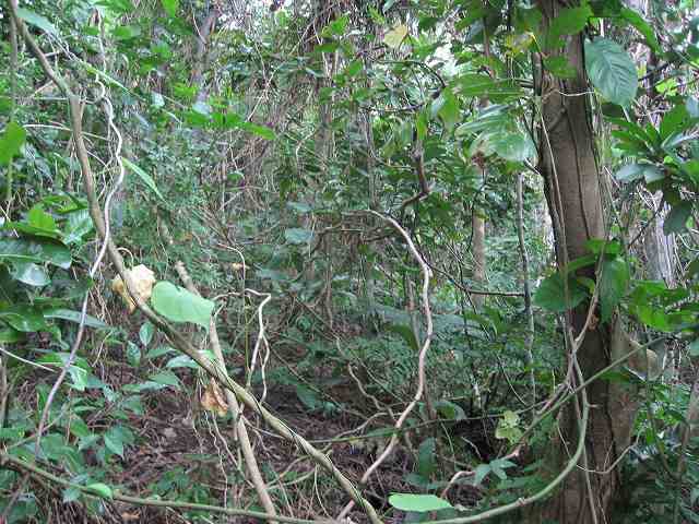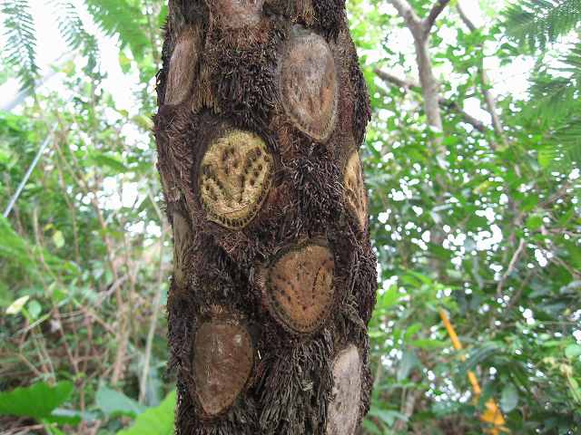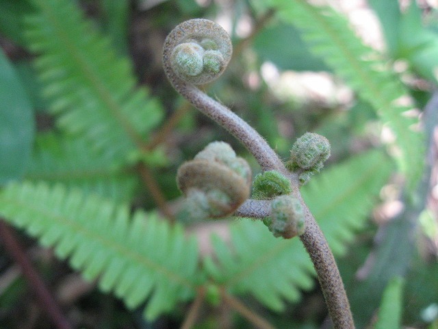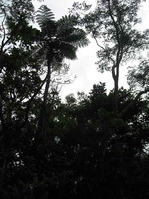 ・・・・・。たまらんですね。 色といい、質感といい、素晴らしいです。 しかも、このフワフワうぶ毛。なんとも言えません・・・。 アレ?なんか、ちょっと寂しくなってきたのは、気のせいですか? (お~い。みんな。ドン退きしてる??) さてさて、お話は『シダを頂く』でしたね・・。 食べれるシダは、私が知っているだけで4種類はありますが、そのうちの2種類をよく頂いています。 以前にこのブログで御紹介したこともあります。 私は、このヘゴさんが大好きです。 初めてこの島に旅で来た時、一番最初に感動したのがこのヒカゲへゴでした。 ヒカゲへゴさんは、とっても背が高くなるシダで、10mくらいになります。 でも、シダなんですよ。すごいですよね。 私が普段によく頂いているのは、おそらく、まだそれほどノッポさんになっていない『ヒカゲヘゴ』。 他に『クロヘゴ』またの名は『オニヘゴ』も多く自生しています。クロヘゴさんは、あまり背は高くなくて、がっしり体型って感じかな? へゴは、他にも『へゴ』、『チャボヘゴ』があります。 この独特の模様。 これは、成長して枝が落ちた痕です。 このヘゴがまた美味しいのですよ。 『ホウビガンジュ』。 もう、美味しくって、美味しくってとまらない。 毎日、一食分だけ摘んできて頂いています。 4箇所くらい自生しているところを見つけたので、交互に頂きに行っています。 味も食感も、たまりませんです。 こんなに美味しいもの、食べ物に困っているイノシシたちや、オオコウモリたち、コノハズクやカンムリワシにも教えてあげたい。 (猛禽類たちも、たまには野菜食べないかなぁ?) この長い雨の間、私はシダ食動物かっていうくらい雨と森の恵みを美味しく頂いて、本当に幸せ。 本当に、いつもありがとう。 ※文章中、ヘゴの同定等で間違いが判明したので訂正しました。