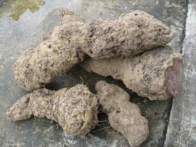 その翌日には、紅露(クール)という染料を山に掘りに行きました。 森から繊維と染料を頂いて、手仕事の準備です。 今日は、その御紹介です。 熱帯の植物の象徴のような感じも無きにしも非ずです。 田中一村の絵にもアダンがよく登場していますね。 この果実は、一応食べれるそうですが、一度も食べてみたことはありませんです。 完熟の実の近くを通ると、とても甘い香りがして美味しそうな気もしますが・・・。 ヤドカリさんたちの大好物(ヤシガニも!)です。 葉は、昔パナマ帽の原料にしたと図鑑に書いてありました。 島では、昔から葉は『アダン葉草履』や『円座』に、根っこの繊維で『アンツク』と呼ばれる籠を編んでいました。 今回、私は根っこの部分を頂きました。 繊維で縄を綯いで、壊れた糸車のパーツの修繕に使ったり、籠を編むのも教わりたいなと思っています。 縄にするのには、今年出てきた根でまだ地面に着いてないものを選びます。 頂いた、根っこちゃん。 皮を剥いて、鎌で切り込みを入れて縦に裂きます。 裂いた繊維は干して完全に乾かしてから、また更に細く裂いて縄を綯います。 今はまだ、干して乾くのを待っているところです。 すぐにカビが生えたりするので、気をつけなきゃ。(以前、カビで真っ黒にして失敗したことアリ。) この繊維は、織物に使えるか?横糸にならなんとかいけるかもしれません。 機会があったら、チャレンジしてみます。 森の中の色んな蔓の中を探すとその紅露の蔓もあります。 とっても似ているやつもいて、まだ時々間違えるので、ちゃんとわかってはいないのだな・・。 紅露は、芋です。 今回は、芋が土から露出しているのを以前から見つけていて、それを仲間を誘って採りに行きました。 熟していて染まりが良いのです。 時々、イノシシがかじっているものもあります。 (イノシシは体調が悪いときなどに薬として少量かじるそうです。) そんな紅露も良く染まるのです。 毎回イノシシたちの分を、それからまた芋が増えるようにと、ある程度は残して採ることにしています。 紅露は、綺麗な茶色に染まります。 限られた地域にしか自生していないので、とても貴重な染料です。 私は、この紅露の色がとても好きです。 紅露は、泥を綺麗に洗い流して千切り状にして煎じます。 その様子は、またの機会に御紹介させていただきますね。 森からの恵みに感謝。 (イリオモテクマタケランの花の蕾)