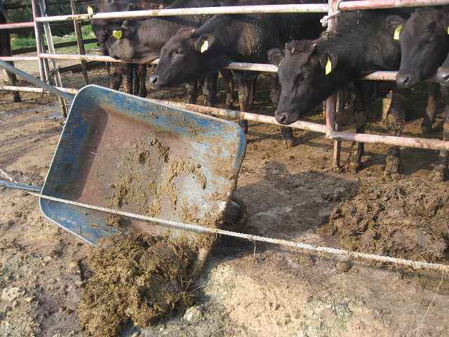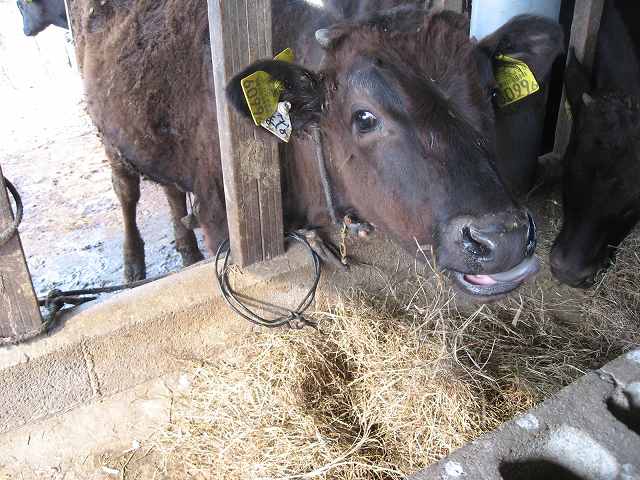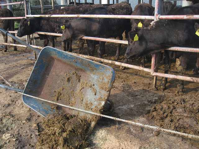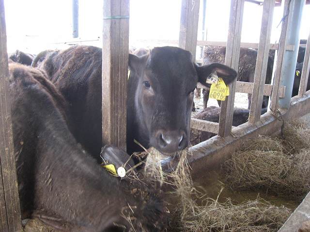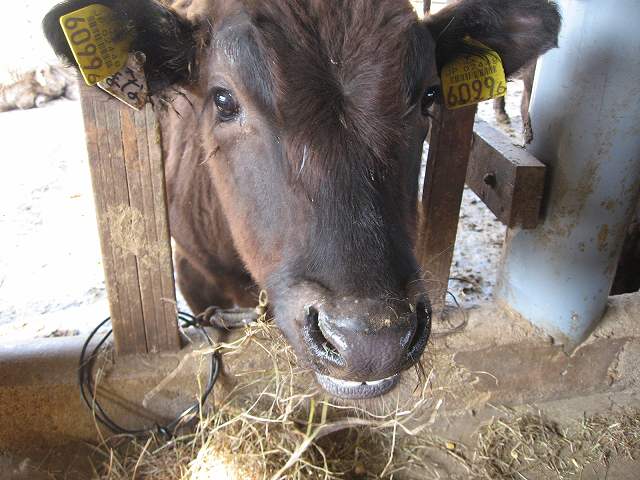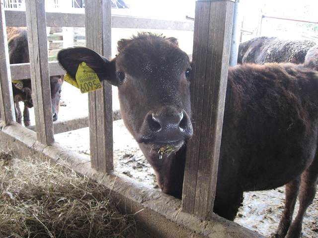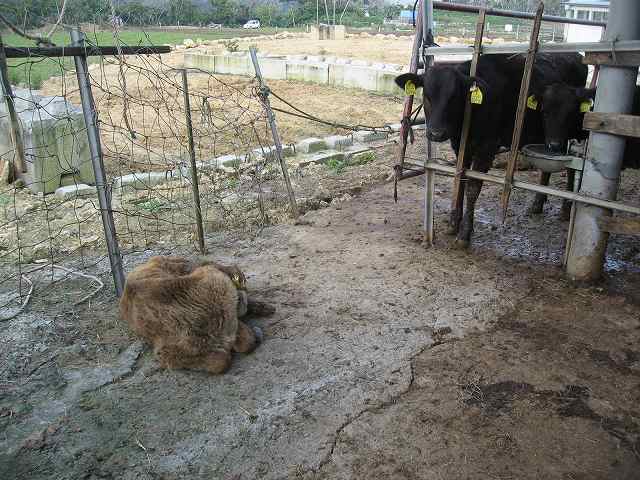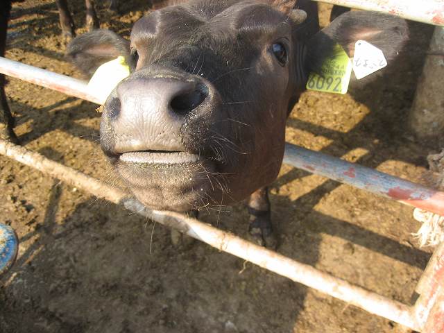 みんな元気かな~?大きくなったかな~? オハヨウ~! ありゃ。ずいぶん大きくなったね~。 草、どんどん食べれよぉ~。 おぉ~~。 ニィニィになったな・・。 草の食べっぷりも立派になったねぇ~~。 (なんだか、親戚のおばさんにでもなった気分です。) その間に新しい兄弟も増えました。 でもこのコは風邪をひいたのか、 下痢をして体調が悪く、ぐったりしていたので、泣く泣く親牛から離して目が届く牛舎に運ばれてきました。 うずくまったまま苦しそうなのに、私は何もしてあげれない・・・。 お兄ちゃんたちも、心配しているのか 気になる様子で、 時々、柵越しにじっと見つめていたり、このコの側へ行きたそうな動きをしていました。 牛って、心やさしいんだろうな・・。 全員風邪ひきさんなのです。 餌箱も一緒だし、水飲み場も共同だからかな。 全員に伝染ってしまうみたいです。 みんな、元気そうなんだけれど、 良く見たら鼻タレちゃんでした。 人間と同じなんだね。 この非常事態では、親戚のおばさんとしては、 みんなに激励の言葉をかけずにはいられません。 「みんな~。早く元気になれよぉぉぉ~~!!」 「ちっちゃいこのコのことも、みんなで応援しようね~~!!」 「ガンバレよぉぉぉ~~!!」 時々、牛舎の中でおっさんみないな咳がこだまします。 ギェッ!!おっさんがいる!! と、思ったら・・・。 こんなにカワイイお顔の、このコたちの咳なのです。 はにゃ~~。コマッタね・・。早くよくなさんとね。 夜、ここ寒いよね・・。どうにかできんもんかね。 と、本気で心配している私をよそに、こいつらったら・・・ ガタン。 と、嫌な予感が・・・。 恐る恐る振り返ると・・・。 ア"ァ"~~!! ダメでしょーー!! (しらんぷり。を、装うヤツら・・。) ハアァァァ~~~。 なんてことするのさ・・・。 キミたちのウンコ、重いのに。 しかも、キミたちのウンコ、スコップですくっても、すくっても、最後のウンコが逃げて、 とっても大変なんだぞ。まったくよぉぉ~~。 それからも、あいつら、隙を狙っては、 ウンコをひっくり返してやろうと、首を伸ばしてくるのだ。 その度に、牛舎には 親戚のおばさん(私。)の ダメーッ が響き渡るのです。 まったく、勘弁しとくれ・・・。 私の上着に鼻水をなすりつけてじゃれてくる、カワイコちゃんたちよ・・・。 キミらの成長を、親戚のおばさんとして見守るさ・・。 みんなの風邪がはやく良くなりますように。 元気になあれ。