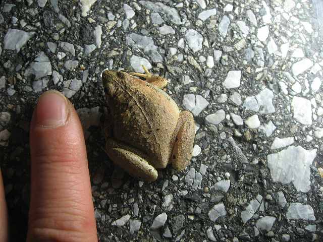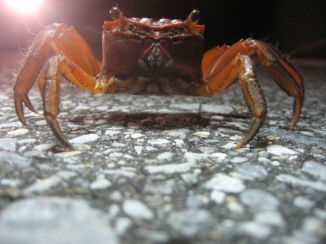 最近、月に一度は帰宅しながら生き物の調査をしています。 本日は、月一生き物隊。 道路上に出てきている生き物たちを、生体と轢死体なども全部チェックするのです。 この調査はロードキル調査(Road Kill)と言われまして、 道路での生物の交通事故死、そしてその轢死体を食べに 別の生物が道路に出てくるなど・・・負の連鎖を少しでも減らそうと、 データを集めて今後の道路構造なども含めて 対策を考えていこうというものです。 いやあ。勉強です。迷わず同定できるようになりたいであります。 意外にカニが難しかったりするようです。 あとは、個人的にヘビですね。。。(単にニガテなので触れないとい点で。。。) 今日は、気温も低くなくて小雨も降ったりしていましたが、 思ったほど出会いは多くなかったです。 ついでに、通行量も若干少なめだったような。 それもあってか、轢死体は1個体のみだったのは良かったです。 ではでは、本日御対面した面々を少しご紹介しますね。 道路でまったりしていた ヤエヤマアオガエルです。 ぼんやりしすぎていたのか、 突付いても逃げてくれず、 道路から草むらへ避難させるのもなかなか大変でした。 うひゃひゃ。 カワイイですね。 今にも飛び跳ねちゃうぞって 顔のこのコはヒメアマガエル。 普段は土の中に潜っていることが多いんですよ。 上からみるとずんぐりむっくりな おチビちゃんなんです。 ネジ式をギリギリと回すような 鳴き声です。 このコは、多分ベンケイガニ。 たくさんいるのですが、 たまにクロベンケイガニと区別がつきにくかったり、アカテガニという似ている別のカニと間違ったりするようです。 このコは両方のハサミがありません。 身の危険があって自切したのでしょうか・・・。 そして、道路の真ん中で堂々と歩いていたのがハマガニさん。 雌のようです。 卵は抱いていない様子。 草むらへ移動させる際にちょいと失礼します。 お腹のところのふんどしといわれる部分が 幅広なのが雌です。 雄はもっと細いふんどしです。 他にはナキオカヤドカリや、おそらくミナミヤモリらしきコ等にも御対面しましたよ。 轢死体の画像は今回は控えるとします。 今回はヘビの轢死体が1個体。サキシマハブのような感じでしたが、 損傷がひどくて確認はできませんでした。 雨が降るとカエルたちが移動して道路上にも出てきます。 それを目当てにヘビだったり、更にはヤマネコが道路に出てきたり・・・。 轢死体を狙ってヤシガニやカニも多く出てきます。 そして、翌朝早くからは、カラスなどの鳥たちも道路上に降ります。 私たちヒトは、考えて行動する知恵や努力する能力を授かっているのだから、 こうしたデータをコツコツと集めたり、できる事から少しずつでもやっていこうと 思うのでありました。 明日は、早起きで生き物に逢いに行きます。