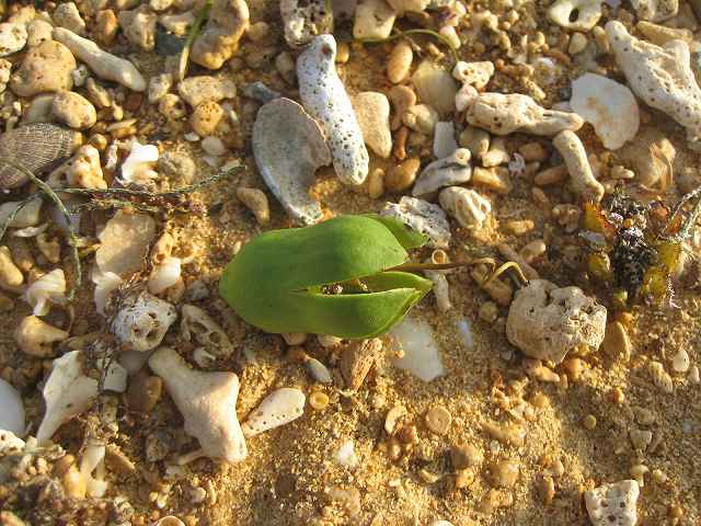 なかなか更新どころか、月一の豆探しも間に合わずに二月に入ってしまいました。 フム~~。椰子っぽいではあるけれど、 ニッパヤシかはちょいと微妙ですよ(笑) 漁師さんによりますと、棘がポイントらしいのですが。。 調査が必要ですね。 ↑森の師匠にも問い合わせましたが、やはりニッパヤシではないようです。 これ。確かに良く見かけていますが、 何なのかは考えた事なかったです。 なにやら、これも漁具らしく、ウレタンの切れ目に釣針をはさんで使うらしいです。 しかし、せっかくの漁師さんの解説をうまく聞き取れず、具体的な使い方は理解できなかった。。。 その他にも、中国や台湾からのプラ浮きを解説してくれたり、(延縄漁に使うとか、この浮きは動きが良くて見やすいとか、浮きは黒が一番見やすいとか・・・。) 通称レモン浮き?を拾って「やったぁ。もうけもん!」と喜んでいたり、 一緒にゴバンノアシを見つけてくれたり・・・。 台湾ヒノキを削って匂いを嗅がせてくれたり、クスノキの流木を見つけて、 イカ釣りの疑似餌を作るんだと、担いで帰る!と声を上げてたり。。。 結局のところ、どこのなにさんなのか??未だにわからないのですが、 その節は本当にありがとうございました。 そんで、豆なんですけれど。。。 なかなか出会えなくて・・・ クチナシの実を見つけてみたりしながら、 自生の植物の実たちのことも、ちゃんと勉強したいなぁ。 なんて思ったりもするのです。 そうこうしていたら・・・ おお。立て続けに海豆が! モダマとワニグチさんかな? おや? 発芽していますよ! ココナッツ。 これはこれは、我が家にお招きしたいですね。 ちょいと、目に付いた漂着ゴミ。化粧品のようです。 そして、最近急によく見かけます。オレンジ浮きの青バージョン『俊雄浮子』。 そして、この日の一番の 気になるコ・・・。 この実はだれなんでしょう?? どなたか御存知ありませんか? 見たことあるような?ないような? 結局、この日の海豆モダマさんとワニグチさんの2豆のみ。 やっぱり、今シーズンはあからさまに 豆が少ないです。 お友達もおっしゃっていましたが、潮流が変わっているとか? なんだかちょいといつものコとは違う佇まいなので、比べてみるとします。 真ん中が今回のワニグチさん。 向かって左側のが標準なワニグチさん。 右側はワニグチさんではなくて、以前、瀬田葉月さんに教えていただいた、Strongylodon siderospearus。 なんだか、ちょうど中間な感じのコでした。 さ、さびしか。 ま、ほとんど1月は海に逢いに行けませんでしたので、当然と言えば当然ですが・・・。 こちらに来なかった変わりに、どこか遠く海の向こうのビーチでは、海豆がコロコロ笑っているのかなぁ。。