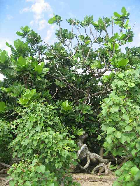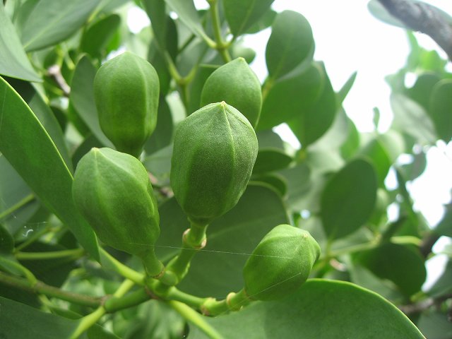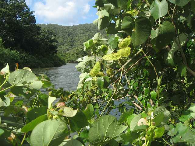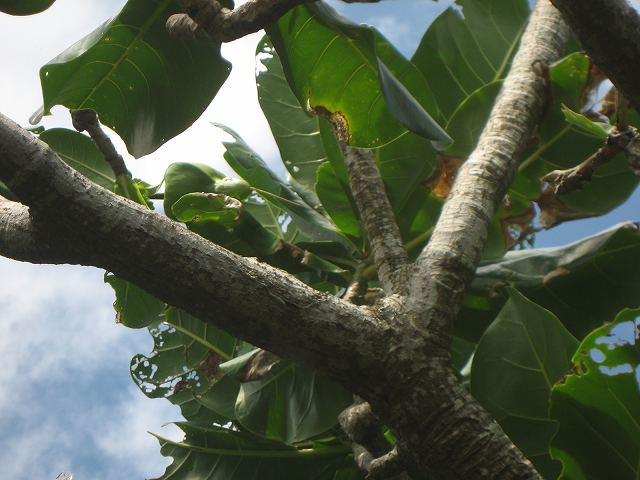 今月は、ちょいと忙しくしています。 少々頭の中が混乱してきて、どうしたらよいのかわからなくなってきたら、 森や海やふとした片隅から、呼ばれる気がしたりするんですね。 どうした?たまには来いよ。。ってな感じ。 先日も、まったく時間に余裕がないにも係わらず、仕事途中に逢いに行ってきちゃいました。 仕事の現場から少し反対方向に歩いて行ったら、待っててくれているその大きな木。 最近、本当にお世話になっている森林管理署の●●さんに以前教えていただいていて 一度逢いに行ったきりだった、ゴバンノアシの木。 海をのんびり旅してきて、この岸にたどり着いて根をはってから何年経つのだろう。 青空に、大きな葉っぱが たくさん揺れている。 わーい。元気だね。 見て見て。 ほら。こんなに大きいんだよ。 ほのかに爽やかな香りにフワフワくすぐられて、お隣にいたマヤプシキさんの傍に寄ると・・ わあ。。 ポツポツと花が咲いている。 ふっくらと蕾もいっぱい。 夜咲いて今まで残っていてくれたんだね。 マヤプシキさんとゴバンノアシさんとを行ったり来たりしながら、つかの間のひととき。 ふと、足元を見ると・・・ あ。 花だ! ゴバンノアシの花が 咲き終えて落ちていました。 もしかして。。 と、背の高いゴバンノアシさんを 見上げてみると。 お!いたいた! 碁盤の脚の形のようだという、大きな実が葉っぱの間から顔を見せてくれていました。 (一番太い枝の右横上辺り。) やっぱり。来て良かった・・。 花の時季などよく知らないまま、ただ逢いに行ったのだけれど、 マヤプシキさんからも思わぬサプライズ。 ものすごく、元気を貰いました。 ゴバンノアシの花。先の●●さんにお聞きしたら、夜8時頃に開花するそう。 是非、また逢いに行きたいです。 ※訂正: 『営林署』→『森林管理署』 に訂正致しました。失礼致しました。