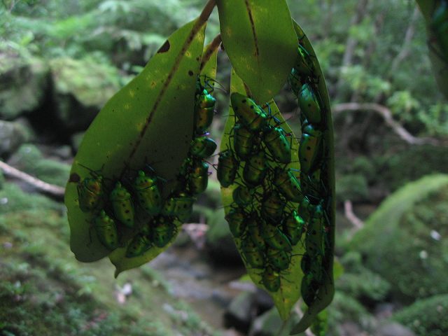 木漏れ陽に逢いに行きたくなりませんか? 素敵でしょう。。。 だけど、私の場合は曇りの日でも雨の日でも森に逢いに行きたいのですけれど。 この日は川を上って森へ。 どんな出会いがあったのか・・ 少しだけ御紹介しましょうね。 森の小さな住民たちも、やわらかい 木漏れ陽を気持ちよさそうに浴びています。 立ち止まって、よくよく目を凝らして 見てみると・・・ こんなにカワイイ顔してくれてたり。 とっても力強い姿を見せてくれたり。 みんなで一斉に笑ってくれたり・・・。 イノシシ作の上等ベッドがあったり。 カワイイこんぺいとうみたいな実を こっそり見せてくれたり。 アカギカメムシをいっぱい負ぶって ちょっと重そうにしていたり。 大きなタシロマメさんが 待っていてくれたり。 それはそれは、立派に太ったハスノミカズラの莢が呼んでいたり。 イテテテ・・・と叫んでる私の顔は 思いっきり笑っていたり。。。 サキシマスオウの実が鈴なりだったり。 いやあ。。。至福でありました。 いつもありがとう。