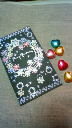思い出して見に行ったら、なんやらいっぱい入っていて、 DMやら請求書やらの中に紛れて封筒が一通。 カサカサ音もする。 開けてみたらハートのチョコがわさわさ出てきて、メッセージカードだった。 X'masとやらは、まるで興味はないけれど…。 「なんで、ハートのチョコとよ?おかしかろうもん。『居てくれてありがとう』とか、 普通恥ずかしくてよう云わんやろうって。(笑)急にどげんしたとね?」 と、必要以上に博多弁でつっこみながら、ハート型のチョコをパクパク食べたら、 なんか、めっちゃ美味しくて泣けてきたよ。。 ikuちゃん。なんかわからんけど、メチャクチャ癒されたんやけど…。(笑) ありがとさん。
