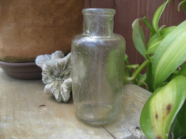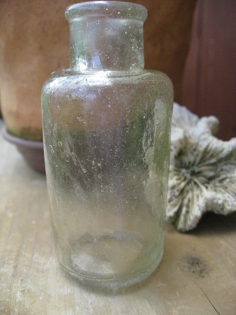 先日、移動途中に一瞬降りた海岸で、思わぬ拾い物。 本当に古いものかどうかは わからなけれど、 昔の薬瓶のような小瓶。 気泡がいっぱい。 形もいびつ。 口の形状が古さを物語っていますが、 いつから海にいるのかなぁ? 底にはAの陽刻が。 海外製かもしれませんね。 かわいい野の花がよく似合いそうな小瓶は、ちょっと嬉しいご褒美でした。