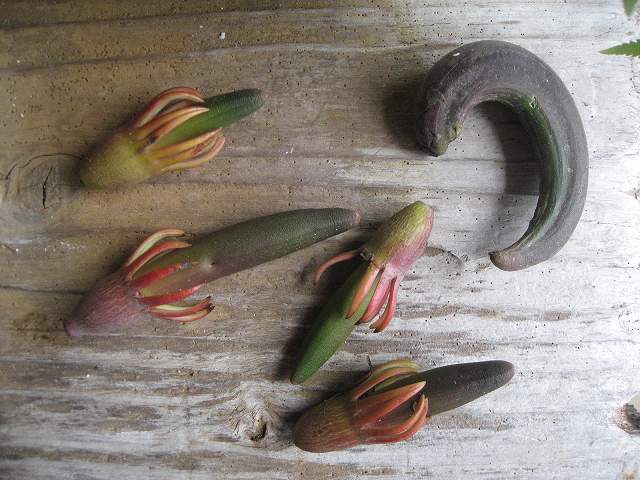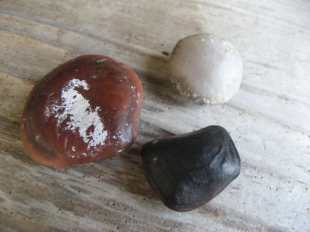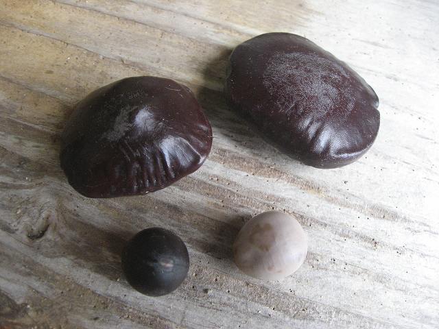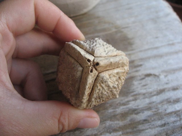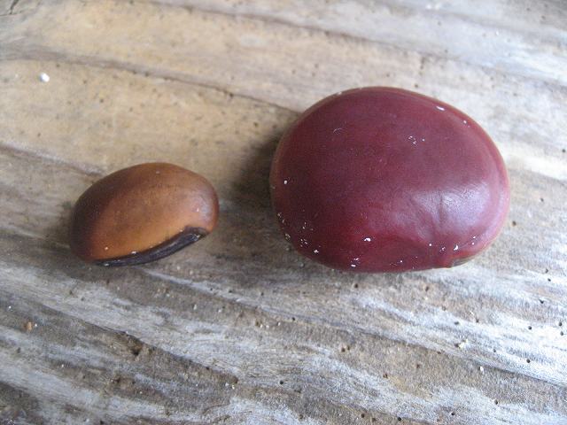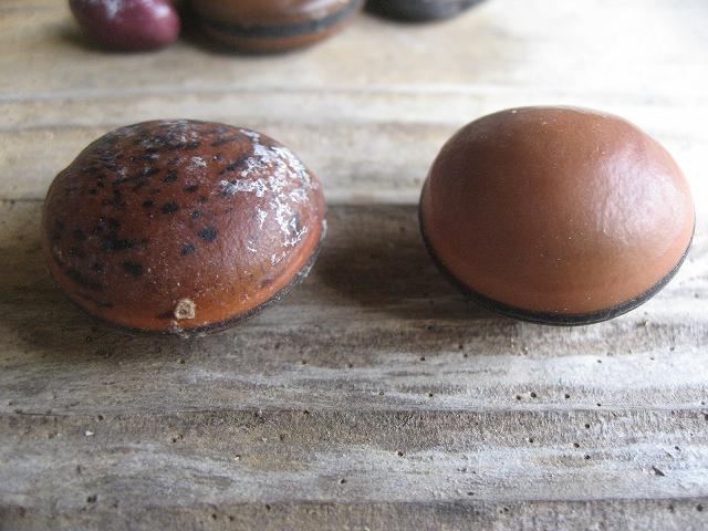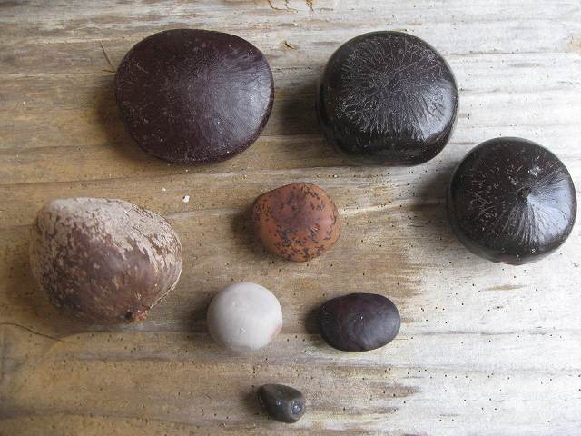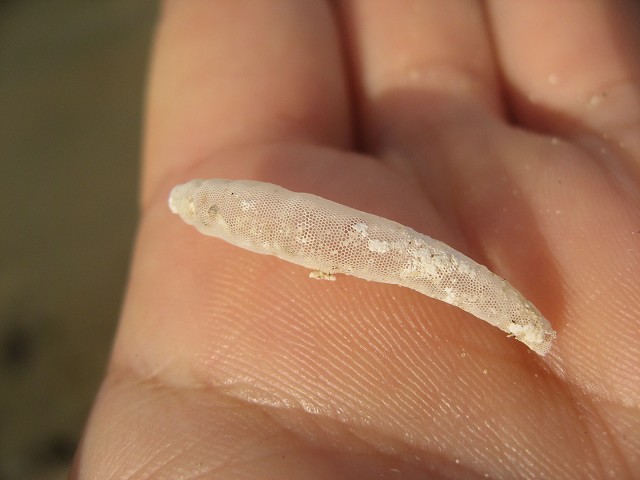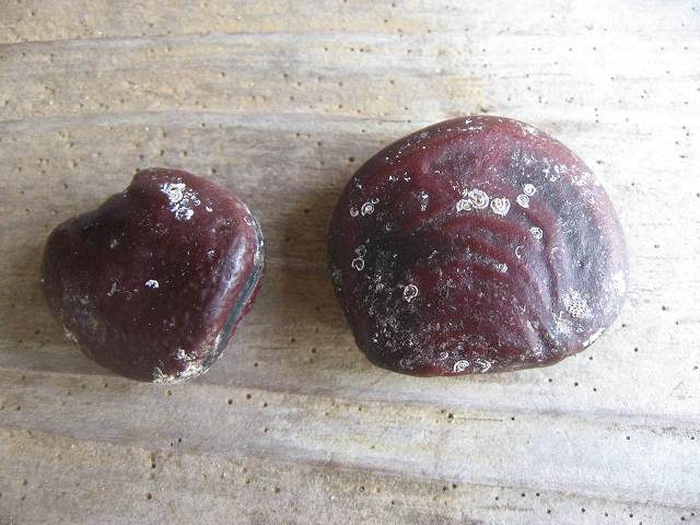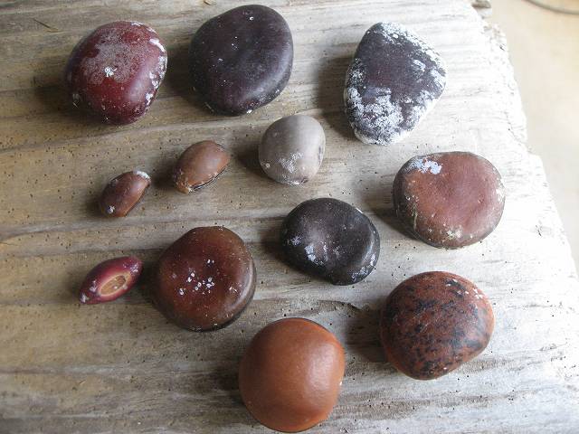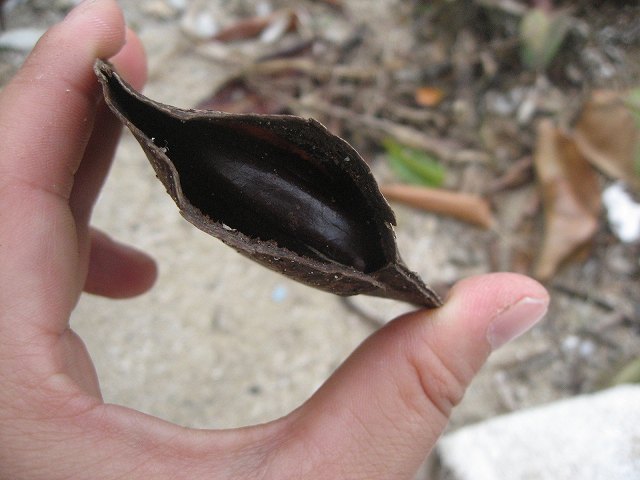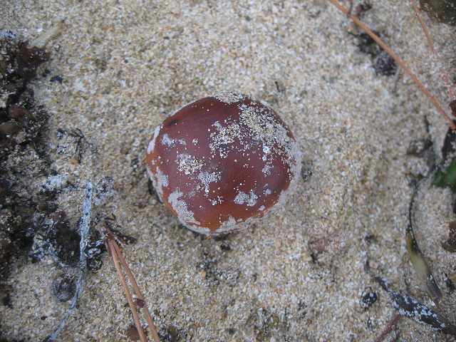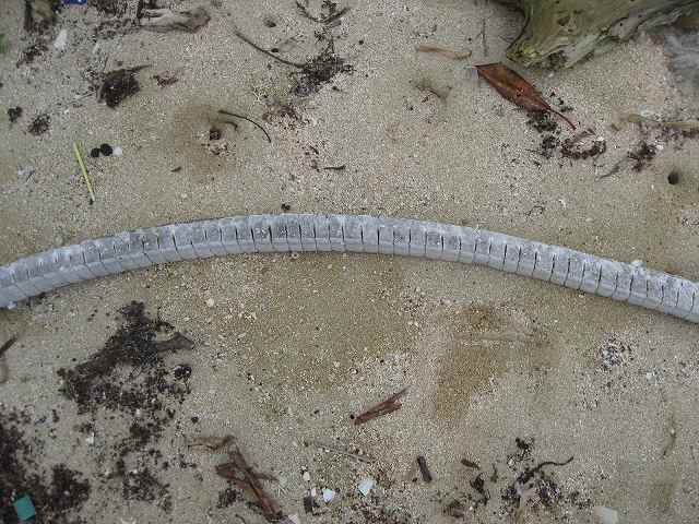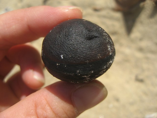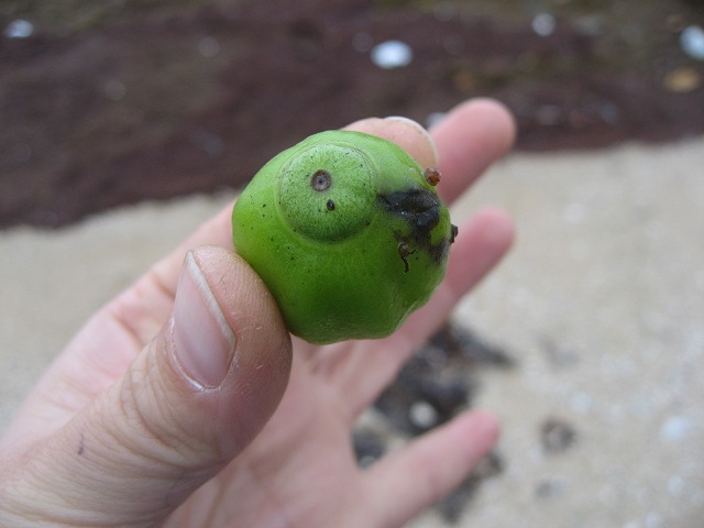 なかなか更新どころか、月一の豆探しも間に合わずに二月に入ってしまいました。 フム~~。椰子っぽいではあるけれど、 ニッパヤシかはちょいと微妙ですよ(笑) 漁師さんによりますと、棘がポイントらしいのですが。。 調査が必要ですね。 ↑森の師匠にも問い合わせましたが、やはりニッパヤシではないようです。 これ。確かに良く見かけていますが、 何なのかは考えた事なかったです。 なにやら、これも漁具らしく、ウレタンの切れ目に釣針をはさんで使うらしいです。 しかし、せっかくの漁師さんの解説をうまく聞き取れず、具体的な使い方は理解できなかった。。。 その他にも、中国や台湾からのプラ浮きを解説してくれたり、(延縄漁に使うとか、この浮きは動きが良くて見やすいとか、浮きは黒が一番見やすいとか・・・。) 通称レモン浮き?を拾って「やったぁ。もうけもん!」と喜んでいたり、 一緒にゴバンノアシを見つけてくれたり・・・。 台湾ヒノキを削って匂いを嗅がせてくれたり、クスノキの流木を見つけて、 イカ釣りの疑似餌を作るんだと、担いで帰る!と声を上げてたり。。。 結局のところ、どこのなにさんなのか??未だにわからないのですが、 その節は本当にありがとうございました。 そんで、豆なんですけれど。。。 なかなか出会えなくて・・・ クチナシの実を見つけてみたりしながら、 自生の植物の実たちのことも、ちゃんと勉強したいなぁ。 なんて思ったりもするのです。 そうこうしていたら・・・ おお。立て続けに海豆が! モダマとワニグチさんかな? おや? 発芽していますよ! ココナッツ。 これはこれは、我が家にお招きしたいですね。 ちょいと、目に付いた漂着ゴミ。化粧品のようです。 そして、最近急によく見かけます。オレンジ浮きの青バージョン『俊雄浮子』。 そして、この日の一番の 気になるコ・・・。 この実はだれなんでしょう?? どなたか御存知ありませんか? 見たことあるような?ないような? 結局、この日の海豆モダマさんとワニグチさんの2豆のみ。 やっぱり、今シーズンはあからさまに 豆が少ないです。 お友達もおっしゃっていましたが、潮流が変わっているとか? なんだかちょいといつものコとは違う佇まいなので、比べてみるとします。 真ん中が今回のワニグチさん。 向かって左側のが標準なワニグチさん。 右側はワニグチさんではなくて、以前、瀬田葉月さんに教えていただいた、Strongylodon siderospearus。 なんだか、ちょうど中間な感じのコでした。 さ、さびしか。 ま、ほとんど1月は海に逢いに行けませんでしたので、当然と言えば当然ですが・・・。 こちらに来なかった変わりに、どこか遠く海の向こうのビーチでは、海豆がコロコロ笑っているのかなぁ。。