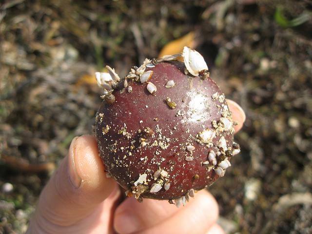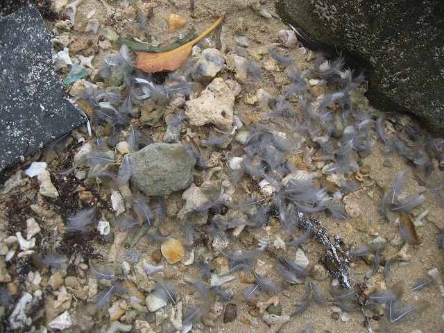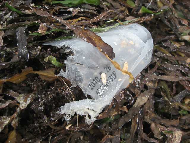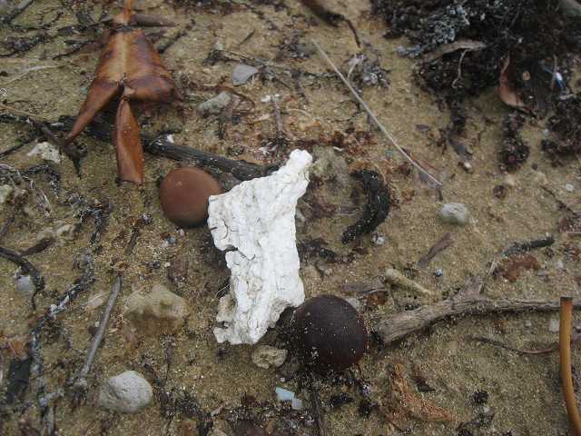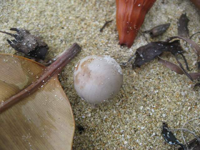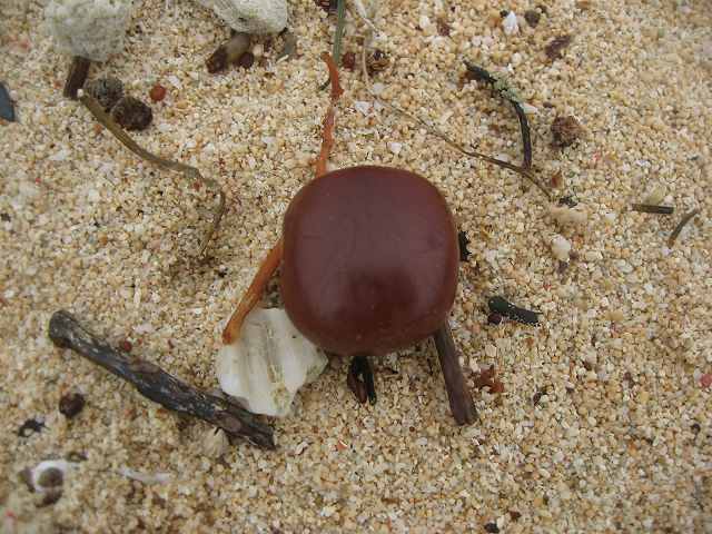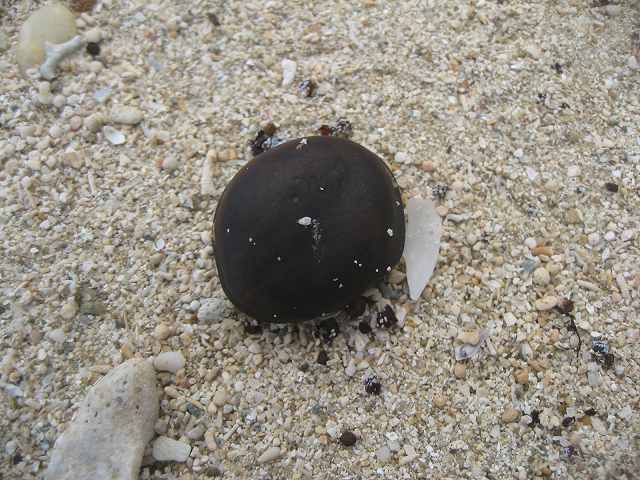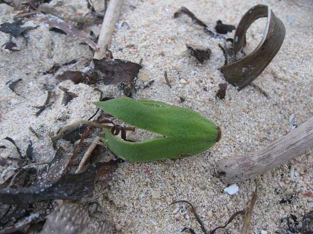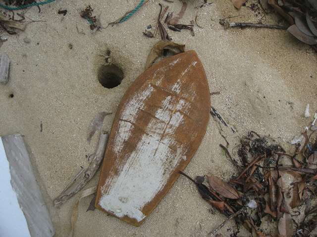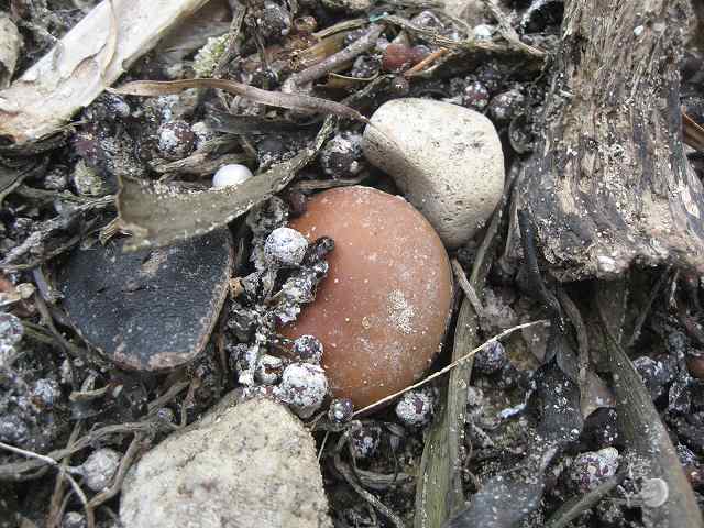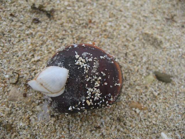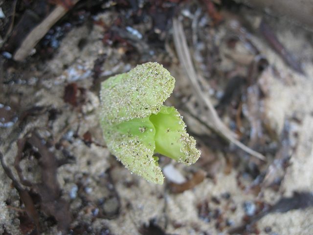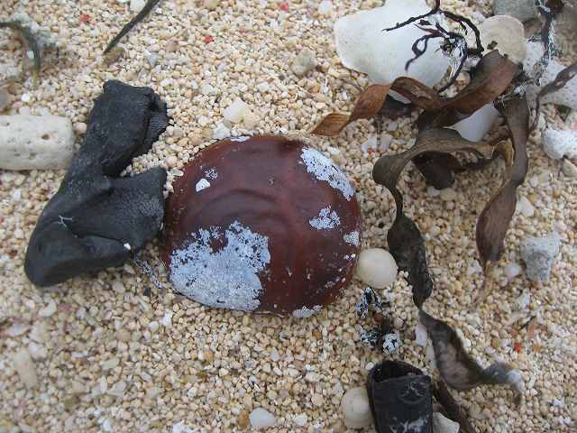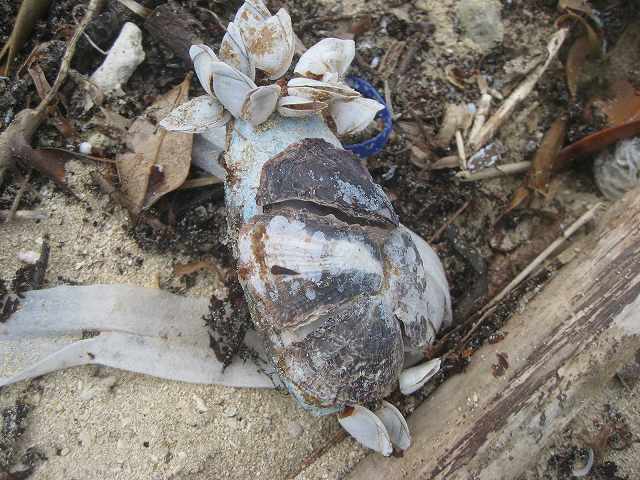 月一豆日。 ちっちゃな、ハスノミカズラor シロツブちゃん。 私の個人的見解では、 ハスノミカズラかな。 いやあ・・。参りました。 月一豆日。師走編は、1豆でございました。。。 相変わらずのヤシの実や、ゴバンノアシなどはコロコロしていました。 他は自生のナンテンカズラやクロヨナ、ハスノハギリ、サキシマスオウやサガリバナ等の お馴染み種子と、海を越えて来た、ククイナッツやシナアブラギリがポツポツとありました。 種子以外では、久々にエプソン社のコンテナ流出のインクカートリッジが一つありました。 まだ海を漂っているんですね。 いやぁ。豆少ないですね。 いったい、どうしたのでしょう??ボクノ豆、シリマセンカ? 勿論、このままでは不完全燃焼なのでありますが、ビーチをはしごする時間の余裕がなく、 仕方なく漂着ライター拾いの海岸にわずかな望みをかけるとしましょう。 この日、最後に2箇所の海岸へライターを探しに足を運びました。 どちらのビーチもこじんまりとした綺麗な海岸で、普段から寄せ物は少ないビーチです。 それは、それでとても素晴らしいですね。 もう陽も傾きかけていて、急ぎ足で歩いてきました。 そこで出会った豆! カショウクズちゃん! かなり、小粒ちゃんでした・・・。 と、いうわけでして、月一豆日、師走編はどっちもチビッコ!2豆でした。。。 これではあまりにセツナイので、今月の漂着ライター調査の時の御報告も一緒に。 ずっと天候に恵まれない日が続いて、寒がりの私は南の島で怪しいくらい着膨れて、 いざ!出陣。 やっぱり、寒いとこのコたちも 参っちゃうのですね。 まずは、海藻のベルトの中で、アサガオガイの打ち上げが目に飛び込んできました。。 寒かったんだね。。 となると、やっぱり。 カツオノカンムリ&カツオノエボシさんたちも。 まだ青々としています。よくよく見てみると、皺といい、すごく綺麗。 そしてやはりかならずカメラがむかうのが、 フィールドサイン。 痕跡フェチですから。。。 そして、ライター目当てに何気に退かしたゴミの下には・・・ きゃああ! まん丸なジオクレアちゃん! やっぱり、ひょんな出会いって ますます嬉しい・・・。 そしてなぜか、1コ見つかると案外次々と 現れてくれるんですよね~。 コケムシ痕なジオクレア! お! キミはシロツブちゃんか? こちらもはるばる旅して来た様子ですね。 浮き袋もまだ残っているアサガオガイ。 浮き袋でプカプカ海を旅している貝。 ホントに、不思議な生き物ですね。 チビウミガメちゃん。どうしちゃったの? 大変だったんだね。。。 アカウミガメの赤ちゃん。 後日、この画像をウミガメ研究所の方がご覧になってわかったのですが、アカウミガメの幼体がこちらで上がるのはものすごく珍しいことらしく、回収して欲しいとのことでした。 モンパノキの下に埋めたので、すぐに見つかると思って探しに行ったのですが、見つけることはできず。。。 結局、ライター調査は3日間でトータル100個ほど。 年明けに落ち着いたら分析もやります。 海豆は、他に先のアカウミガメのチビちゃんを掘り出すために探しに行った時も含めての収穫はこんな感じでした。 イルカンダが久しぶりにいました。 画像はありませんが、ふやけかけのイルカンダもいたので、発芽に挑戦しようかと思います。 ホントに、今年は豆がいないな・・・。