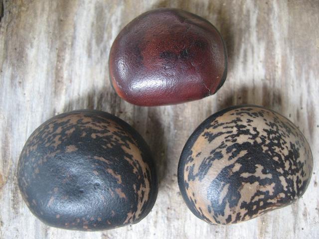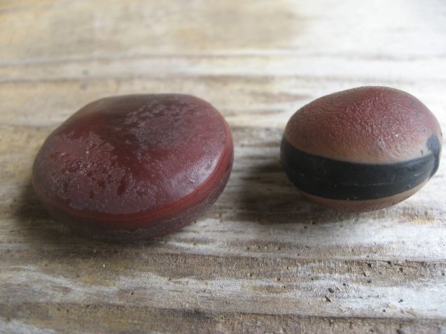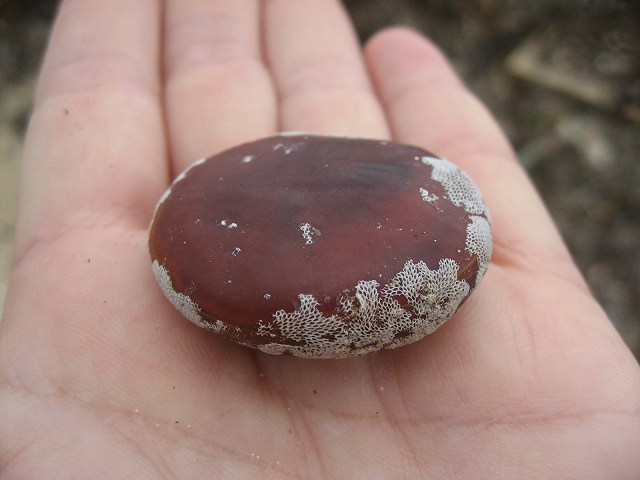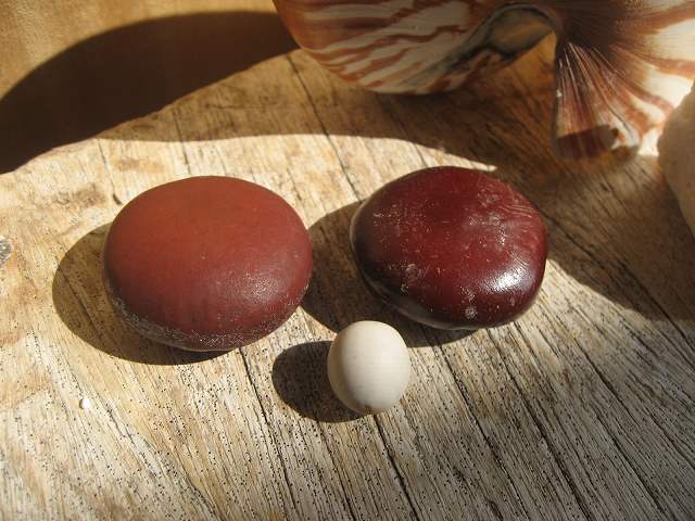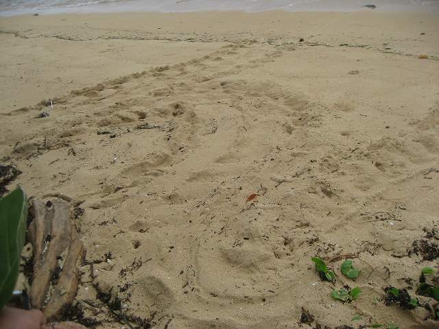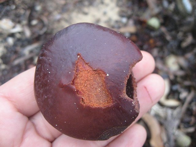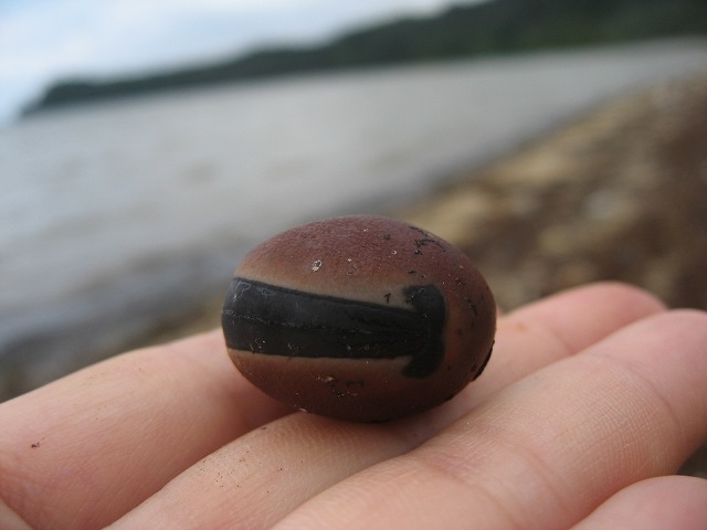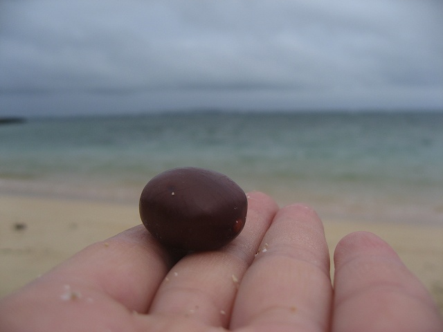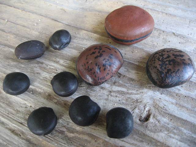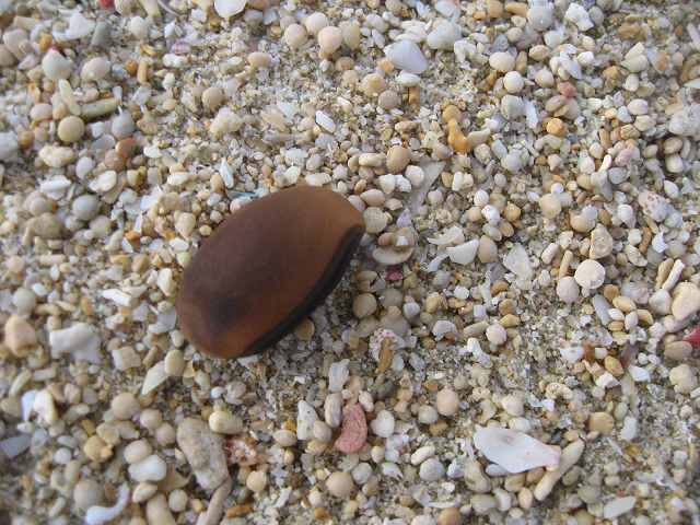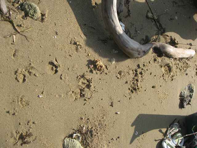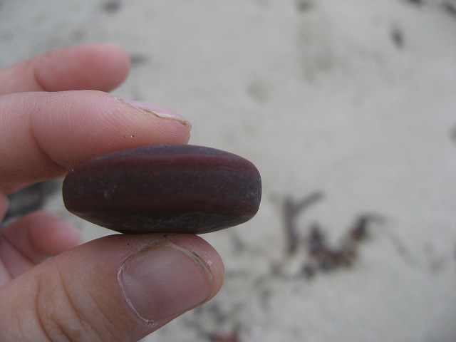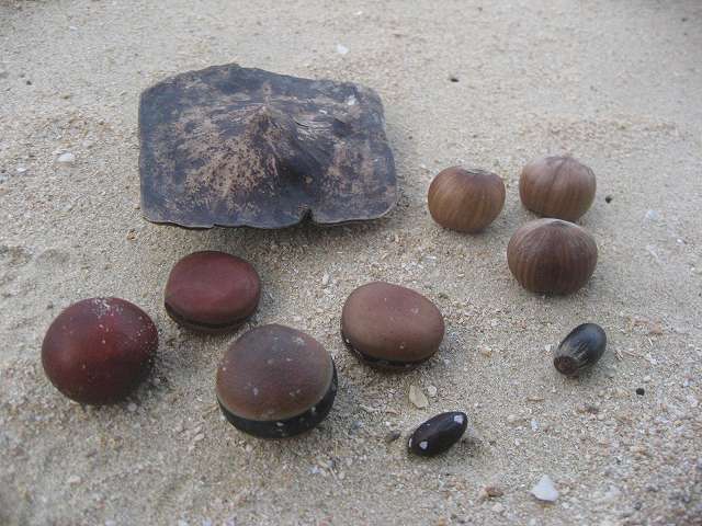 いつのまにやら霜月です。はたまた御無沙汰でございます。 ネタは貯まりつつありますです。 これから、ナガレモノな季節でございますよ・・。 先回の記事にて、『月に一日はじっくり海を歩いて・・記録を・・云々・・』と書きました。 ハイ。やってきたのです。月一豆捜索! そこまでは、時間さえ作ればなんてことなくできるんですけれど。 『記録』と『更新』が。。。不精極まりないのですが・・・ひじょーに、面倒であります。 特に、後者の方が面倒で仕方が無いのです。 しかぁし!言ったからにはやるしかないのでありまして、頑張ろうと思う所存であります。 目指せ!豆探して豆に更新!(月一って自分で思いっきりハードル下げているのにね・・) なので、今回はその他諸々は後回しにして、月一豆の御報告です。 久しぶりに降りるビーチ。 賑やかな足跡がたくさん! ブヒブヒ一家でご飯探しにきたのかな~。 最近、どうも、流行っているらしい・・・。 冬瓜茶!! ペットボトルのもよく見かけています。 ど、どげんやろうか・・? お姉さん・・。 いたいた! 最新のタイドラインで待っていたよ。 とにかく、海藻とゴミがすんごく多いのです。 きっと、この海藻の山の下にも海豆ちゃんがいるんだろうなぁ・・とは、思いますが、 さすがに除けてまで探せません。 (たまに気まぐれで蹴ってみたら、偶然ちょうどジオクレアちゃんがいてくれた事はありますよ!) ここの浜では、このふたり。 ふとっちょ赤モダマさん。 ローカルドリフトらしき、 とっても美しいヒメモダマさん。 それから、 裏も表もかわいい陶片。 そして・・・。 しかも、私3個目です。 エボシガイも生々しく付着していて、長旅してたのかな? と、思ったけれど、意外と最近の様子。 今年の夏に落とされたようです。 ハウジングは結構ボロボロですが、 中身は大丈夫でした。 この件は、また後日詳しく。 持ち主探しするとしましょう。 次の浜へと。 この浜も海藻のラインができていました。 防潮林の根元からたくさん砂が流れて、 一緒にゴミも出てきていました。 ゴミの割りにあまりめぼしい物は見当たらず・・。 諦めかけたころに、何気に掘った砂から 出てきたのは! ハンバーガー君じゃないか! ここでも、海豆ちゃんはふたつのみ。 ハンバーガー君は、かなり久々で嬉しい。 ハスノミさんらしきコも。 付着物はほとんど無し。 ここのビーチはマングローブもたくさんあります。 これは、チビッコオヒルギ。 た~くさん落ちていて、ついつい拾ってきちゃうのだ。 チビッコでも、過保護に育ててたらたまに芽吹きします。 復路の途中で、ふと思いついて車を停めると。 そこは、カショウクズマメの自生地。 莢を捜して見上げてみたけれど・・。 フム。高い木の頂上に蔓は這っているので、見えないな。 地面を探すと・・ いましたよ。山豆カショウクズさん2豆ゲット。 最後に立ち寄ったビーチで、思わぬ出会いが! めったに降りない小さなビーチ。 降り口も草ボーボー。アダンがイテテテ。 林をくぐり抜けた瞬間に目に飛び込むは、 ピンクゥ~!! そうです。ピンクモダマちゃんでした。 やっぱり。うれしか・・。 ピンクちゃんのすぐ横には、 長旅してきた様子のタカナタマメさんもいました。 ウヒヒ。 しかし・・・。 なんだか、豆、少ないな。 ライバル多いのか?不作なのか? (島の豆先輩曰く、圧倒的に結実が減っているとか・・。 モダマやハスノミ、カショウクズも例年より少ない気はします。) オマケ: ちなみに、この日のとっておき、ハンバーガー君とピンクモダマちゃん。 顔を洗う前と、綺麗になってからの2ショットです。