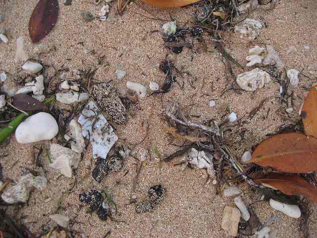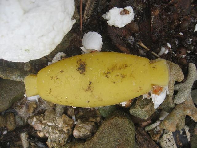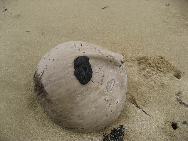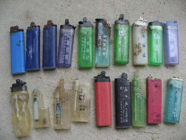 えっと。 おや?シロツブさんかなぁ? わぁ。。大きなフィールドサインが! そうです。ウミガメの上陸の痕跡です。 ここの浜にも上がっていたとは。 わーい♪ 久しぶりの御対面。 このコもモダマ(Entada)の仲間だとか? 嬉しくて、やっぱりお決まりの撮影会ですね。 勾玉藻なのかな? ・・・・・。 か、かわいくない・・にゃ。。。 この日の収穫。 うっすらまだらが入った平べったい ジオクレアさんも。 私は、このタイプは初めてでした。 肝心の、ライターですが・・・ トータルでは170個ほど拾いました。 その中で、お店の名前など文字が入っていたり、ちょっとおもしろい物をピックアップ。 中国語だったり、ナイスバディな形状だったり、お姉さんの写真入りだったり・・・。 はるばる流れてくるのですね。。。 この調査でわかる事が、今後活かされればいいなぁと、思います。 オマケ。 ミス・ハイユとしては、どうしても廃油ボールにも目が行くので、廃油も回収。 行政への働きかけの材料にできそうな話だったので、頑張って拾いました。