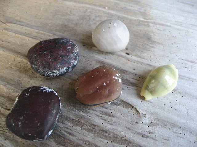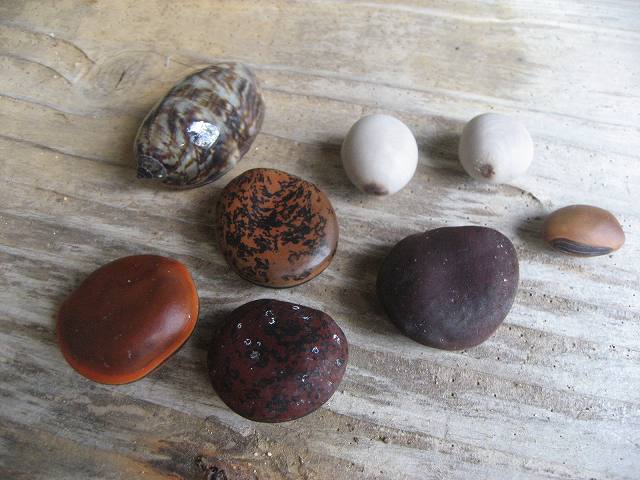 今年は、半分以上ほったらかしに してしまいました。 その間、色んなことが起こったり、 色んなことを思ったり。 言葉になんかならなかったり、 怒りと悲しみがしつこく 纏わり憑く思いもしたので、 すべて手放してしまえと 空に向かって投げたりして。 そんなことも人間には必要だったりするみたい。 そうしたらね・・。 なんかちょっと図太くなったような・・・。 妙な攻撃も気にしない。 白黒、善悪・・はっきり落とし前 つけなきゃ気が済まない性質だけど、 だんだんどうでもいいやって思えてきた。 落とし前なんてものは、人間がつけなくたって、自然に答えは見えてくるんですね・・。 人間が人間を裁くのは無意味だな。 私は自分の心に嘘つかない生き方を大切にすればいいかな。 おっと・・この辺りはちょいとヒトリゴト・・・。 色々と考えさせられた2010年。 感謝の気持ちを伝えよう。 ブログさぼっていた間・・・ 月一豆日もやったり、やらなかったり・・・。 だんだんと浜を歩いても、拾った豆たちの記録もつけなくなってしまったり。 夏の間は、ほとんど海へ出かけなかった。 カメラに収まっていた写真を拾い集めてみます。 途切れ途切れの時間ですが、集めてみると結構たくさんでした。 一年の終わりに少しだけ御紹介させていただきます。 目が合った途端に、思わず歓喜の声が出ちゃう・・・カワイコちゃんたちです。 発芽しているニッパヤシちゃんや、海を渡ってくる間に大家族になった漁具とか・・ 海の向こうの飲料水もたくさん・・・ 荒れた海で打ちあがってしまったウミヘビのちびちゃん。動いていたので水辺へ。 カツオノカンムリも・・冬の北風。 大きなバルーン。 可愛いジオクレアちゃん。 ラジオゾンデは毎日飛ばすらしいです。 未だにインクカートリッジ、時々寄せています。まだ引き取ってくれるかな? 廃油も大量のゴミと一緒に、岸にたどり着いたばかり。 相変わらずのカニ類が周りを削っただろう発泡スチロール。 目に付く、ちょっと気になる異国の洗剤とかドリンクの容器・・・。 ガラスの浮き玉のカバーのみも流れ着いてた。 北風と潮の流れが色んなものを運んできます。 夏も終わりに近いある日に会いに行った大きなゴバンノアシの木。 たくさんの蕾と大きく膨らんだ実を下げていた.。 可愛い豆たちも、案外たくさん集まっていました。 夏が終わる頃まではほとんどまともに海を歩いていなかったけれど、 仕事の合間に見つけたコたちと、秋口からはだんだんと北風に呼ばれて海へ出かけて 出逢った豆たちはもう壜にいっぱいになりました。 最後に、大晦日の今日の海。 自転車に乗って北風にも御挨拶。 ヒルギカズラの莢やゴバンノアシ、栗?なんかも。 莢に入ったままのモダマ。 ハ、ハンバーガー君!! シナアブラギリも来てます。 キャンディー浮き久しぶりに見た。 アサガオガイや綺麗なカツオノエボシも。 やったぁ。。。 なんだか、栗仲間さんが3つもいたです。 いやぁ。 やっぱり、ハンバーガー君って嬉しいな。 森で狩をして、海を眺めながらお食事したのかな。 ちなみに、この海の帰りに携帯 落っことしました。。。 気がついて探しに戻ると、 車に轢かれて真っ二つ。 ハハハハ・・。 なんだか、とっても爽快です。 必要になるかもしれないデータは復活しないだろうけれど、 一年の終わりの日に余計な物は綺麗さっぱり脱ぎ捨てちゃおうっと。 2010年。あっという間でした。 私を支えてくれる友や 厳しくも優しく御指導してくださる方々、 大切な家族、 偉大な海、森、空・・・自然の恵みに 心から感謝の気持ちを込めて。 ありがとうございました。 来る2011年も、どうぞよろしくお願いいたします。 この森のイノシシやヤマネコたちのように、日々を精一杯暮らしていこうと思います。
